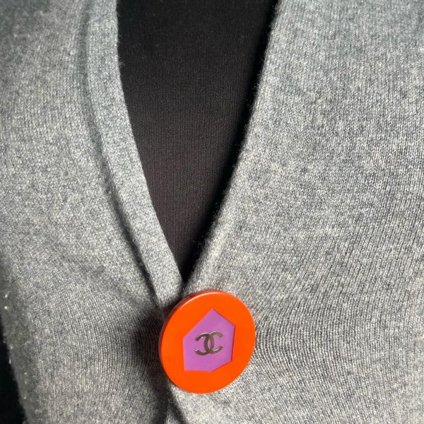 Chanel Vintage CC Colorblock Brooch Purple Red