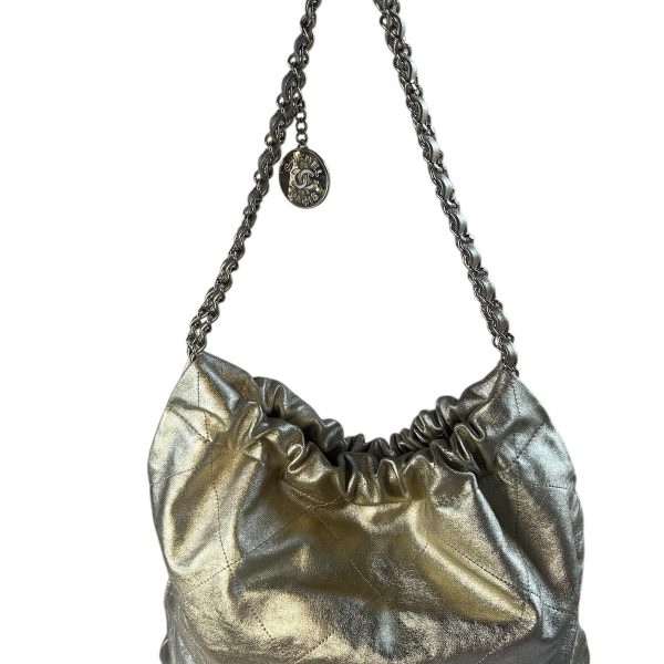 Metallic Calfskin Quilted Chanel 22 Light Gold