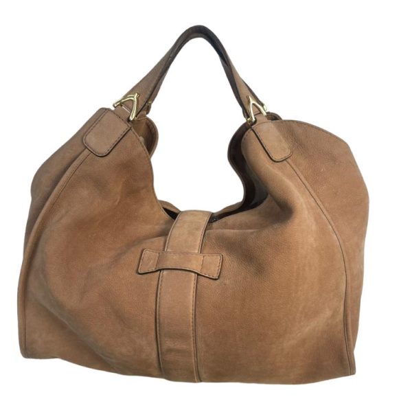 Nubuck Large Soft Stirrup Shoulder Bag Light Brown