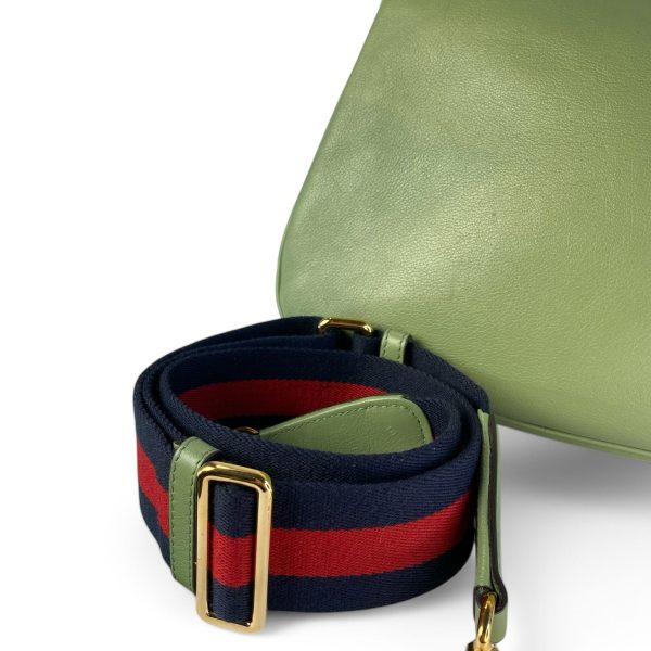Roxy Calfskin Web Medium Blondie Top Handle Shoulder Flap Bag Salamander Green