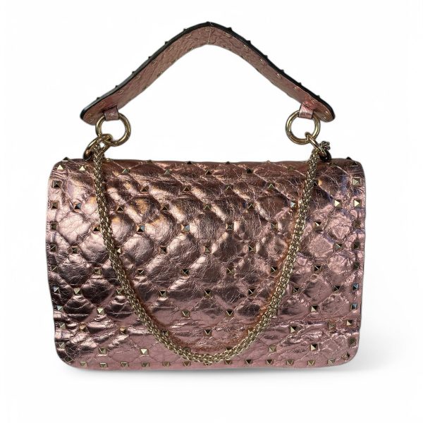 Valentino Garavani Rockstud Spike Medium Leather 2Way Handbag in Metallic Pink
