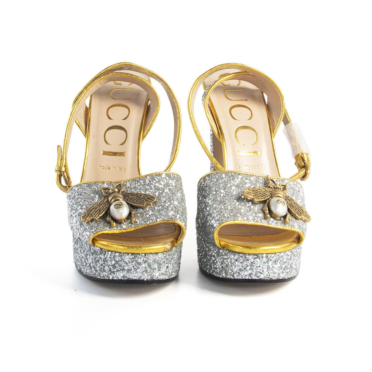 A limited edition from the show made entirely of sequins a d leather Attached is a brass bee with the GG insignia.