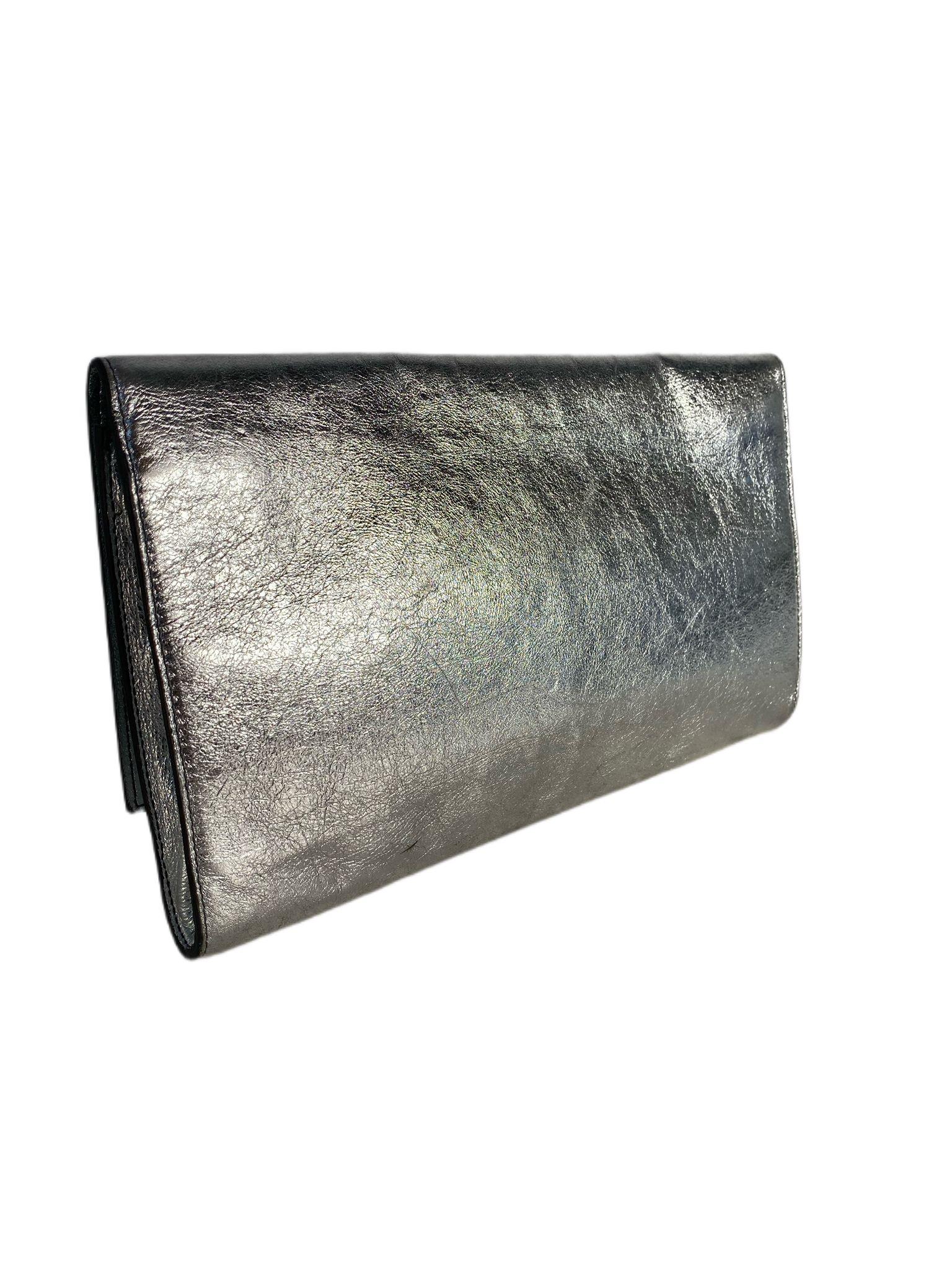 Metallic Leather Large Belle De Jour Clutch Silver