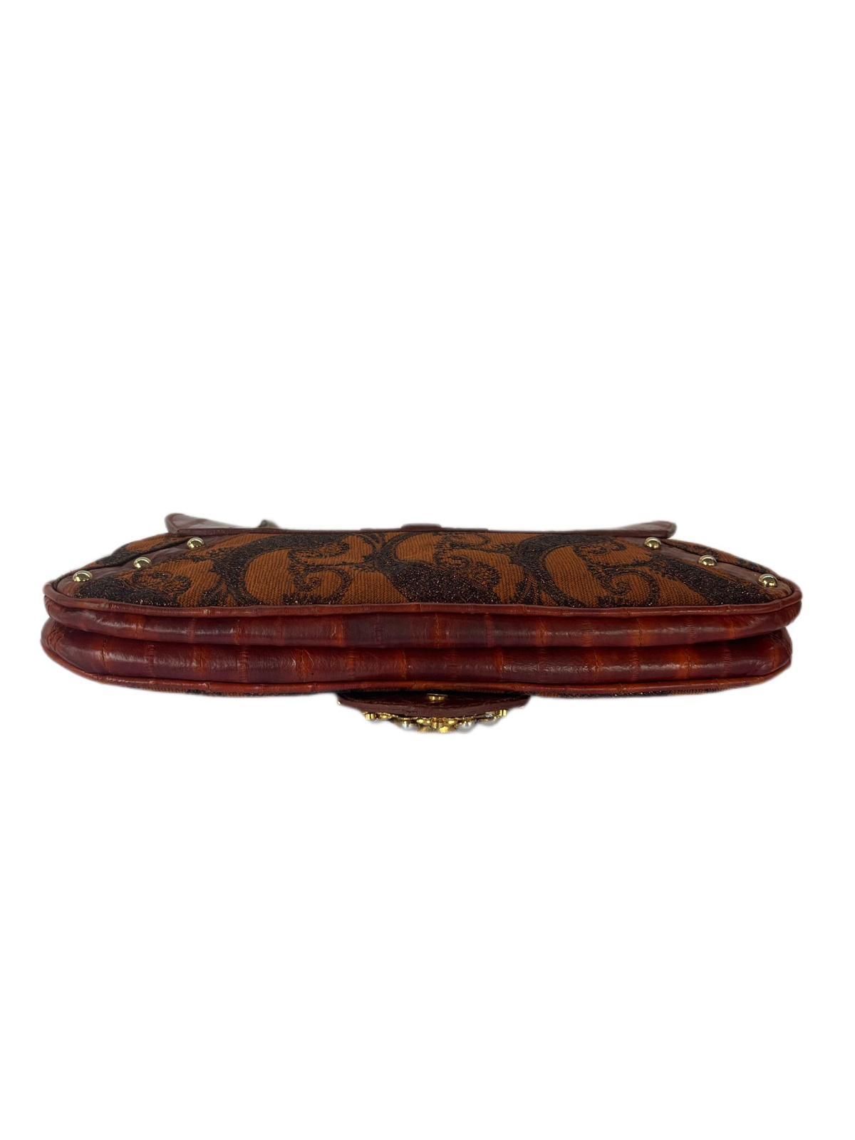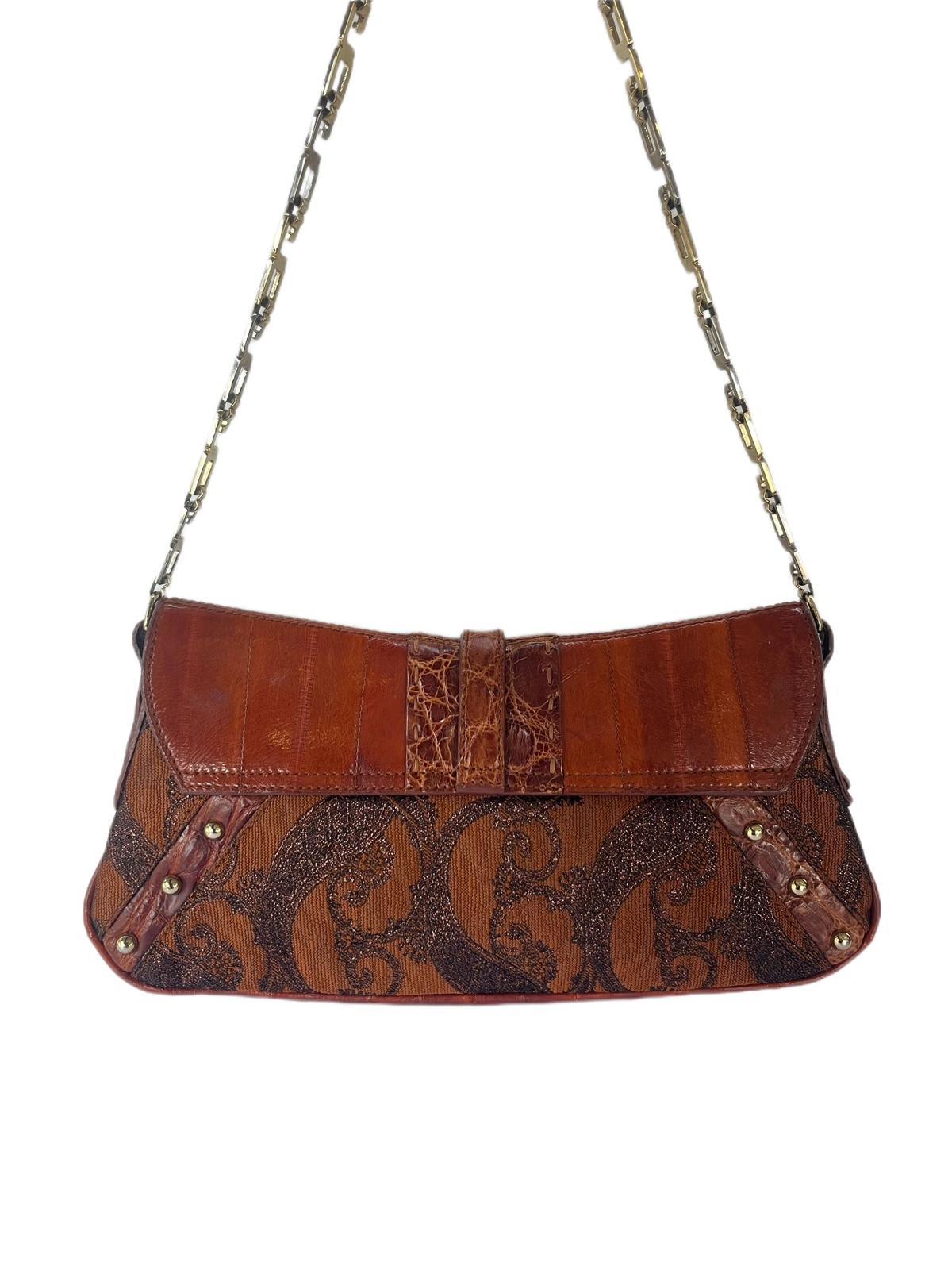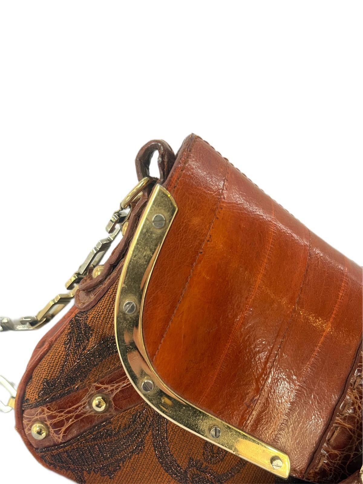 Multicolor Eel Leather And Brocade Fabric Shoulder Bag