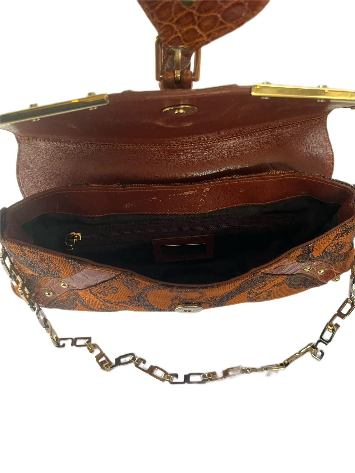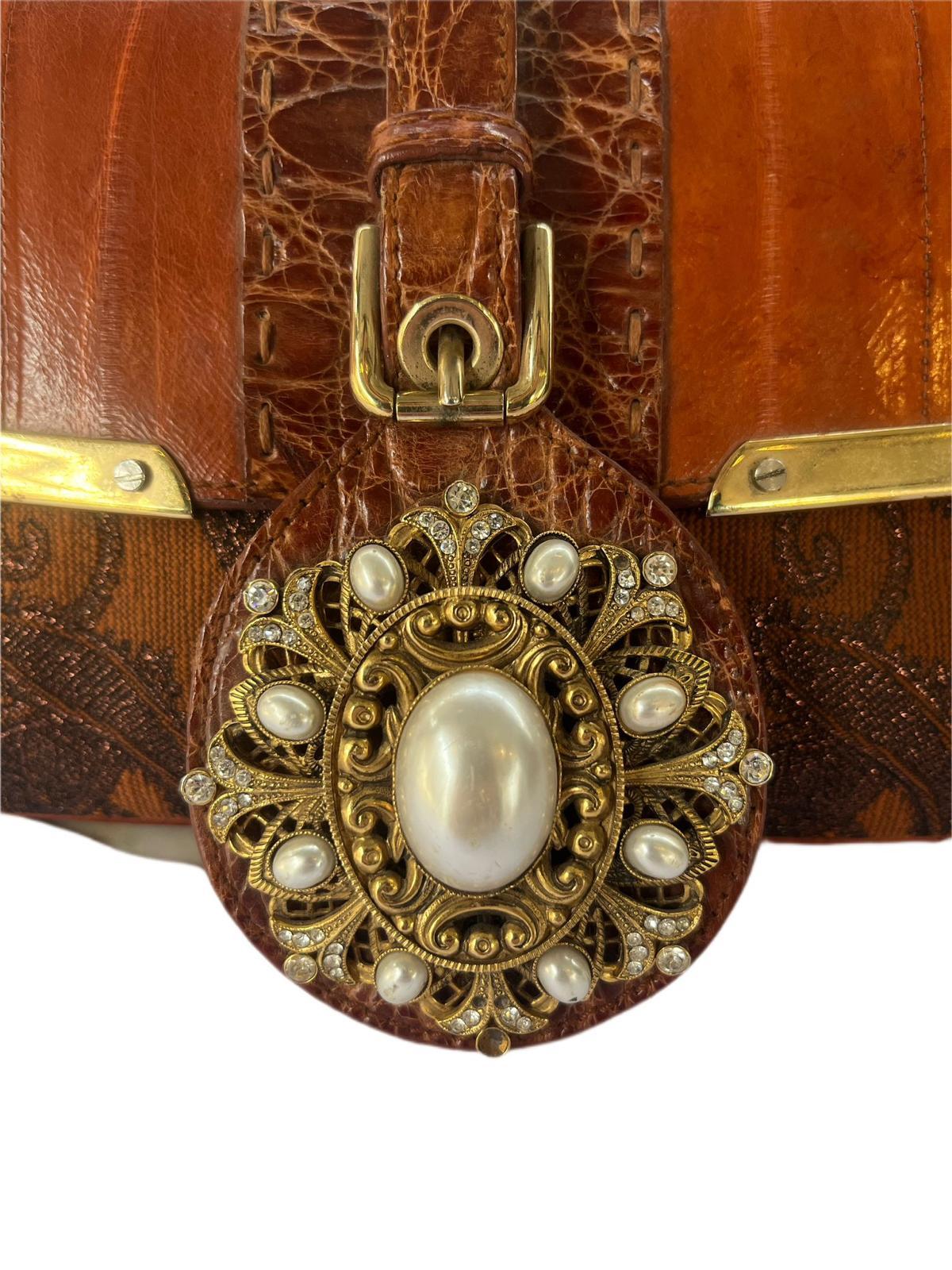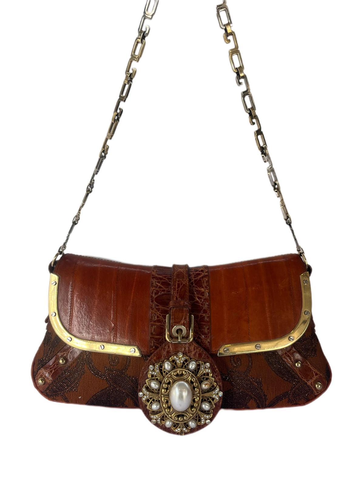 Multicolor Eel Leather And Brocade Fabric Shoulder Bag