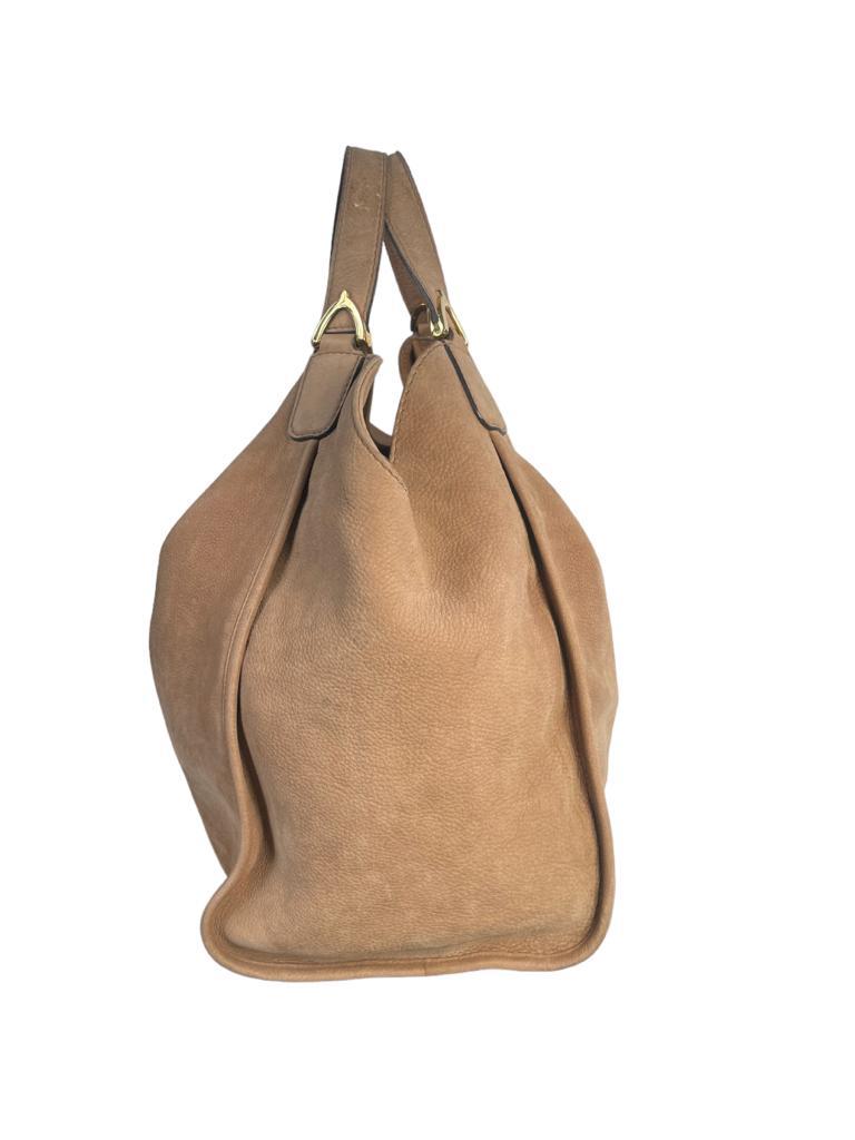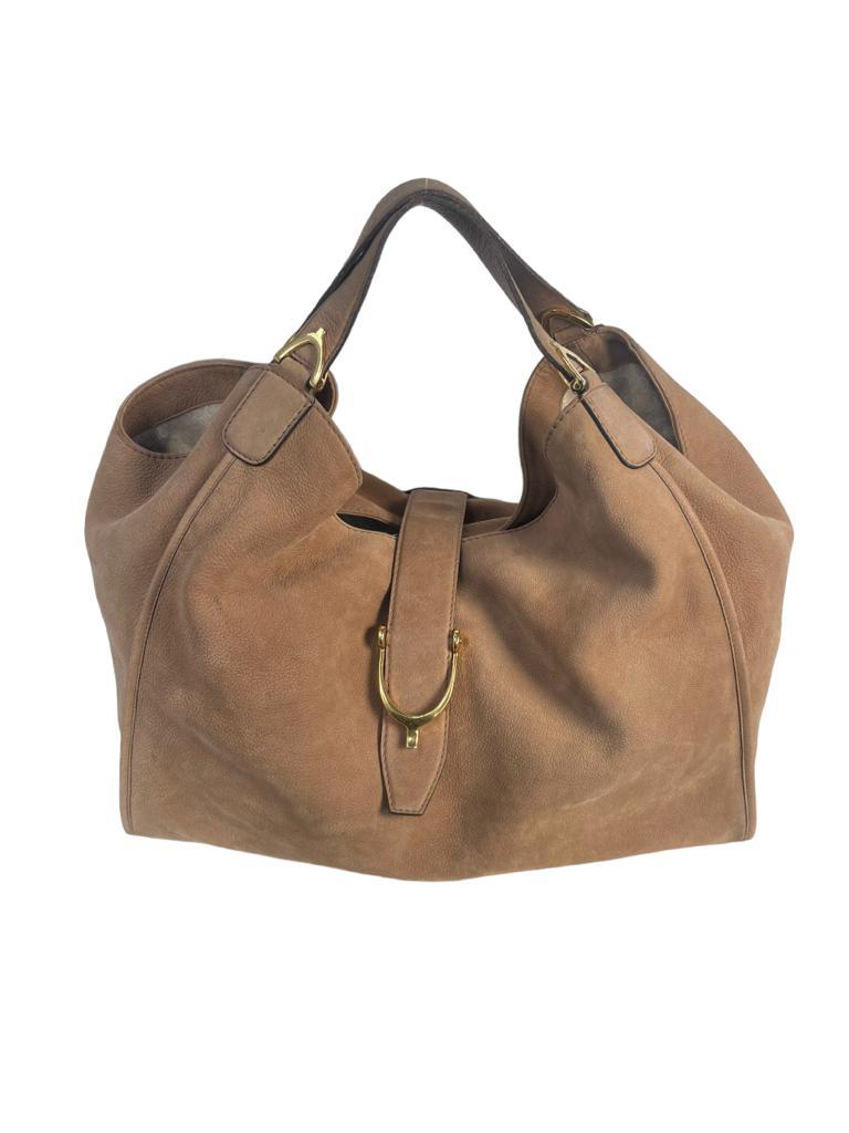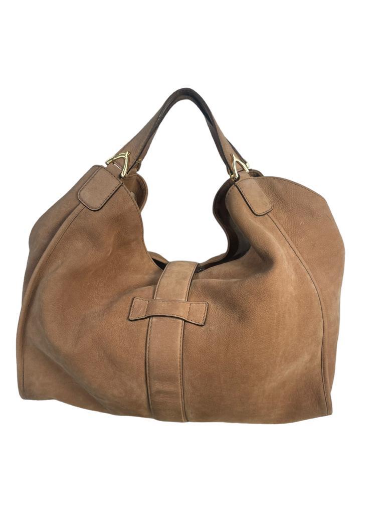 Nubuck Large Soft Stirrup Shoulder Bag Light Brown