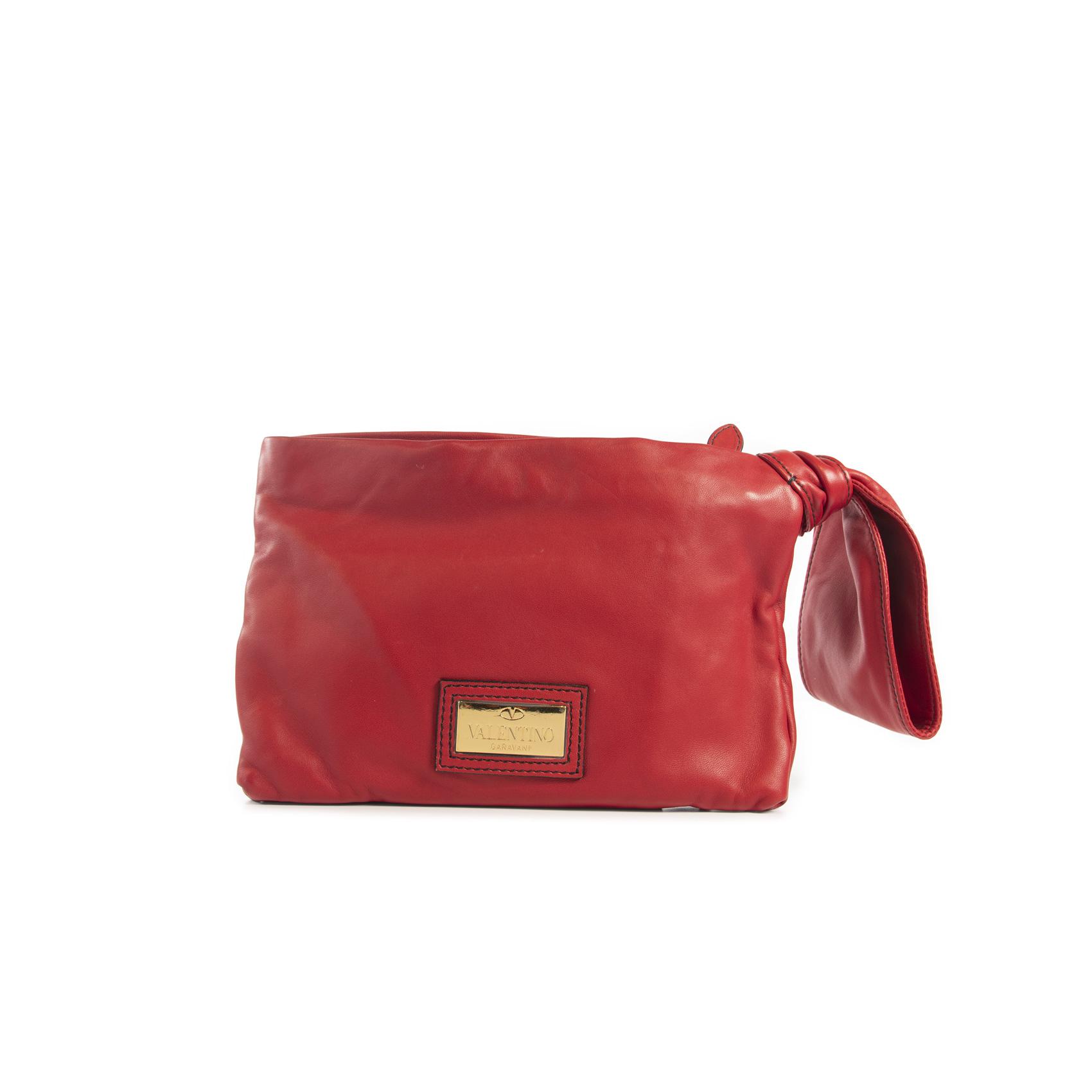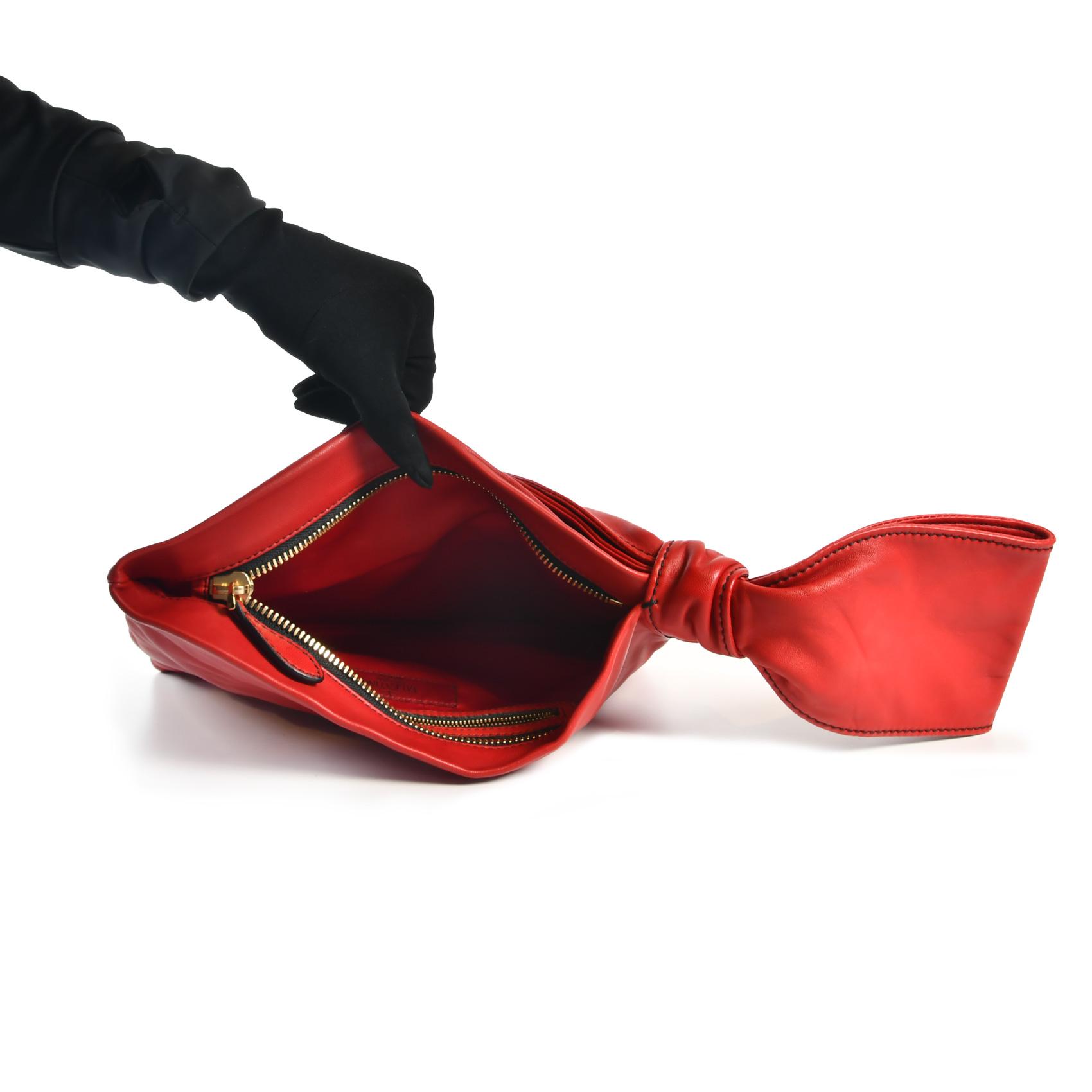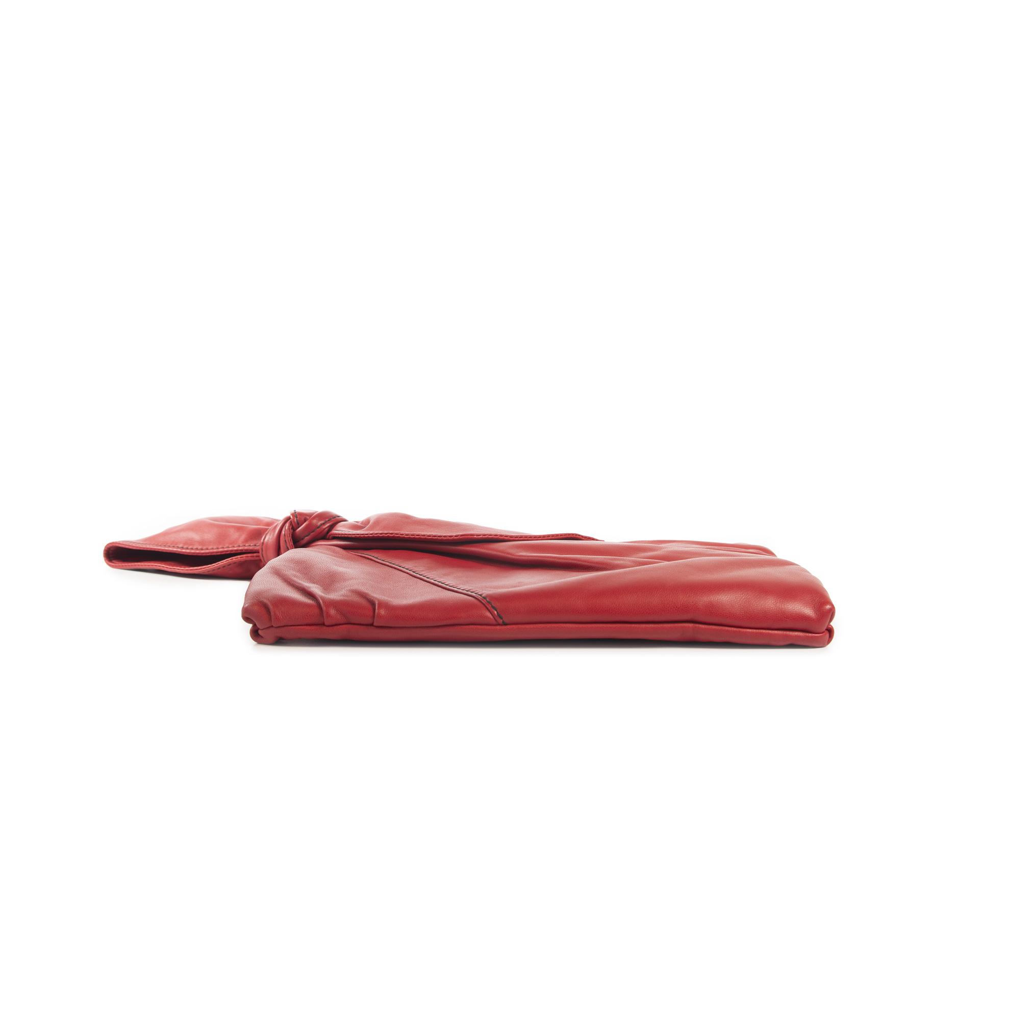 A classic vintage Clutch from Valentino in the famous red color and leather ribbon holder.