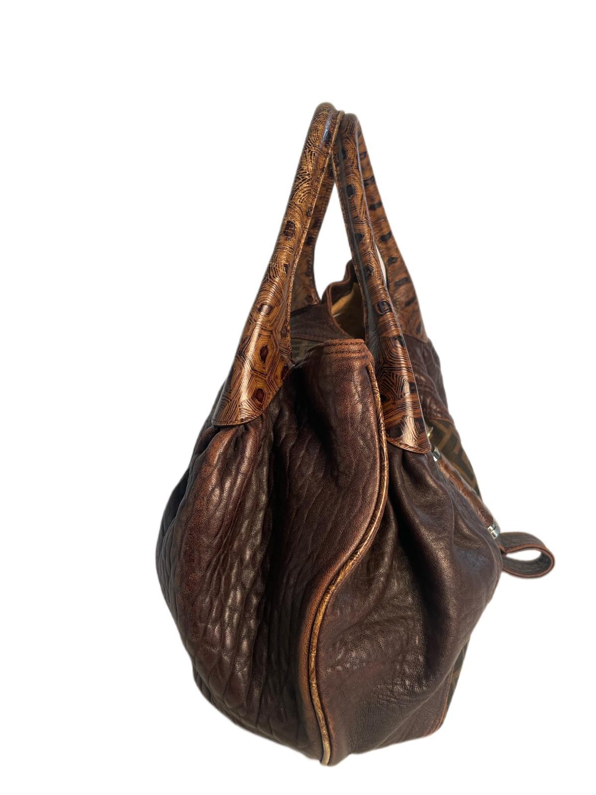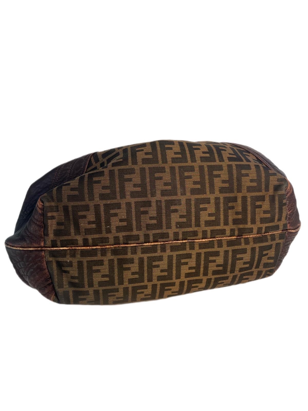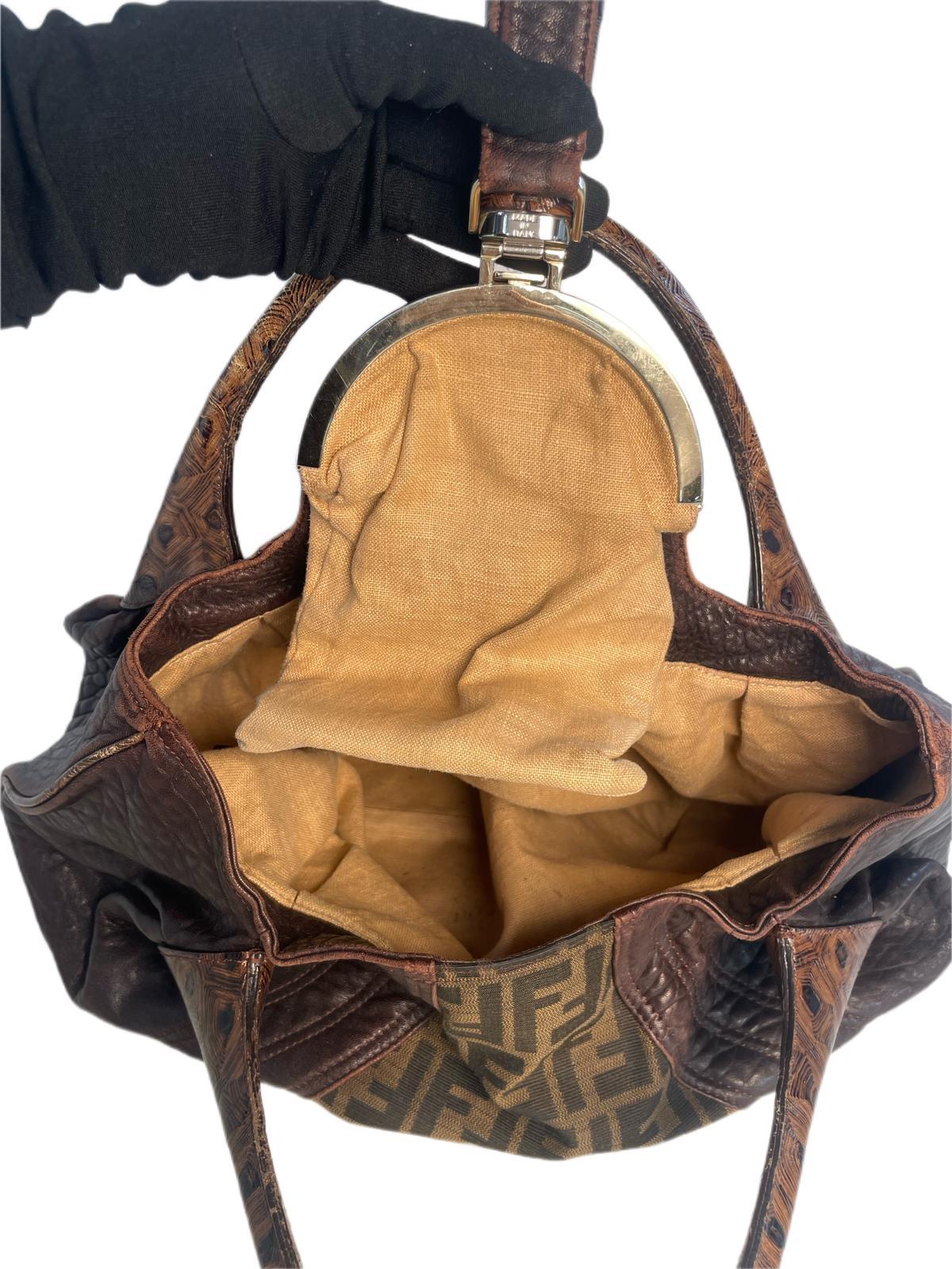 This is an authentic FENDI Zucca Nappa Tortoise Spy in Tobacco. This chic bag is crafted of soft nappa dark brown calfskin leather that has been pleated and tailored with Fendi FF Zucca canvas in the center. The bag has gorgeous tortoise colored leather handles that are wider at their base. The bag has a flap opening with a Fendi logo strap, and opens to a linen interior with a flat pocket.